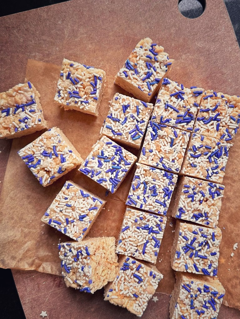 This is a written medium, though, so I’m going to try. The next few paragraphs might be word salad, but at least you get a recipe for Rice Krispie treats at the end!