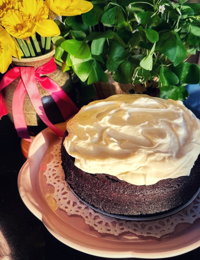 I make Nigella’s cake every year because, well, it’s the best. The Guinness adds a roasty depth and slight bitterness to the deep, dark, chocolate cake. It even looks like a pint with a float of delicious cream cheese frosting on top.