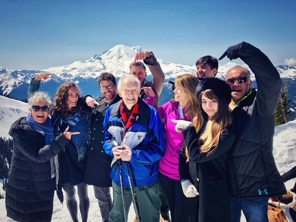 We were lucky that Uncle Richard stayed as sharp as he’d always been until his death at age 96. One of my favorite family pics was taken with him on his 96th birthday at the top of Crystal Mountain. We took the gondola up to have martinis at the mountain top bar because, as Uncle Richard said, “martinis taste best at altitude.”