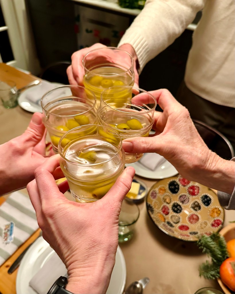3. Measurements are approximate. I usually just pour in amounts of vermouth and brine that “seem right.” So, make your drink how you like it. Be yourself and hug your people. Tell them you love them, the way Uncle Richard always did.