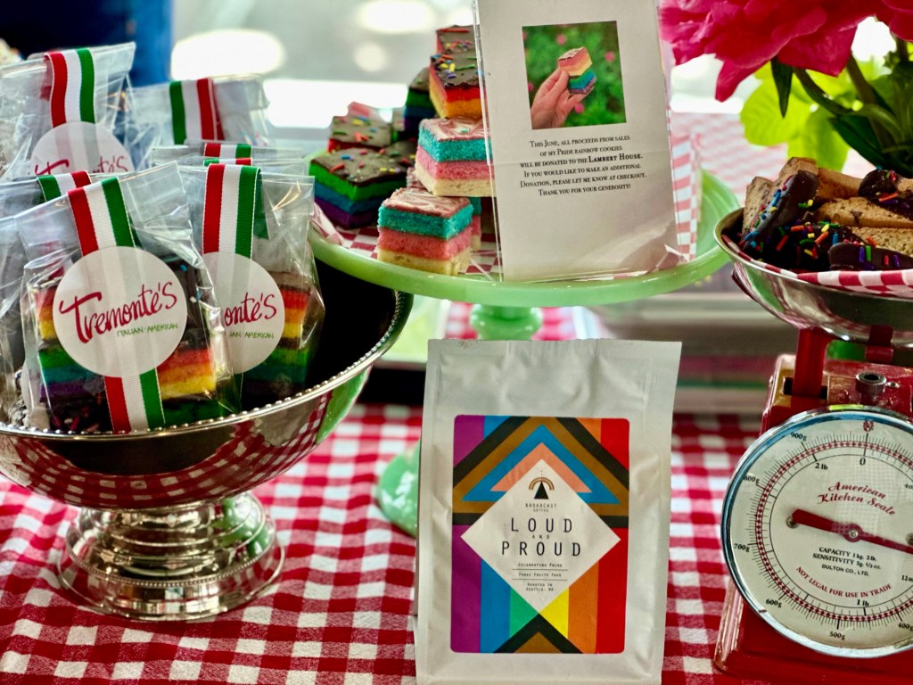 Extra thanks to everyone who purchased my special Pride rainbow cookies in June. I made them as a fundraiser, donating the proceeds to Lambert House. I generated $360 for the cause. It may not be the most gigantic donation of all time, but for a micro-bakery with tiny margins it’s nothing to sneeze at (and it’s a whole lotta rainbow cookies).